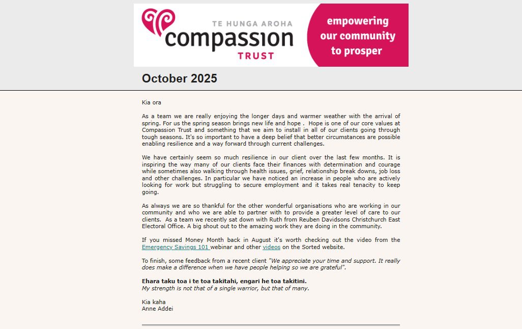 Congratulations to Chris and Gill, two of our long serving volunteers. They were both recipients of the 2025 Waitai Coastal-Burwood-Linwood Community Service Awards in September. We are so pleased that their contributions to the local community over many years has been recognised in this way.