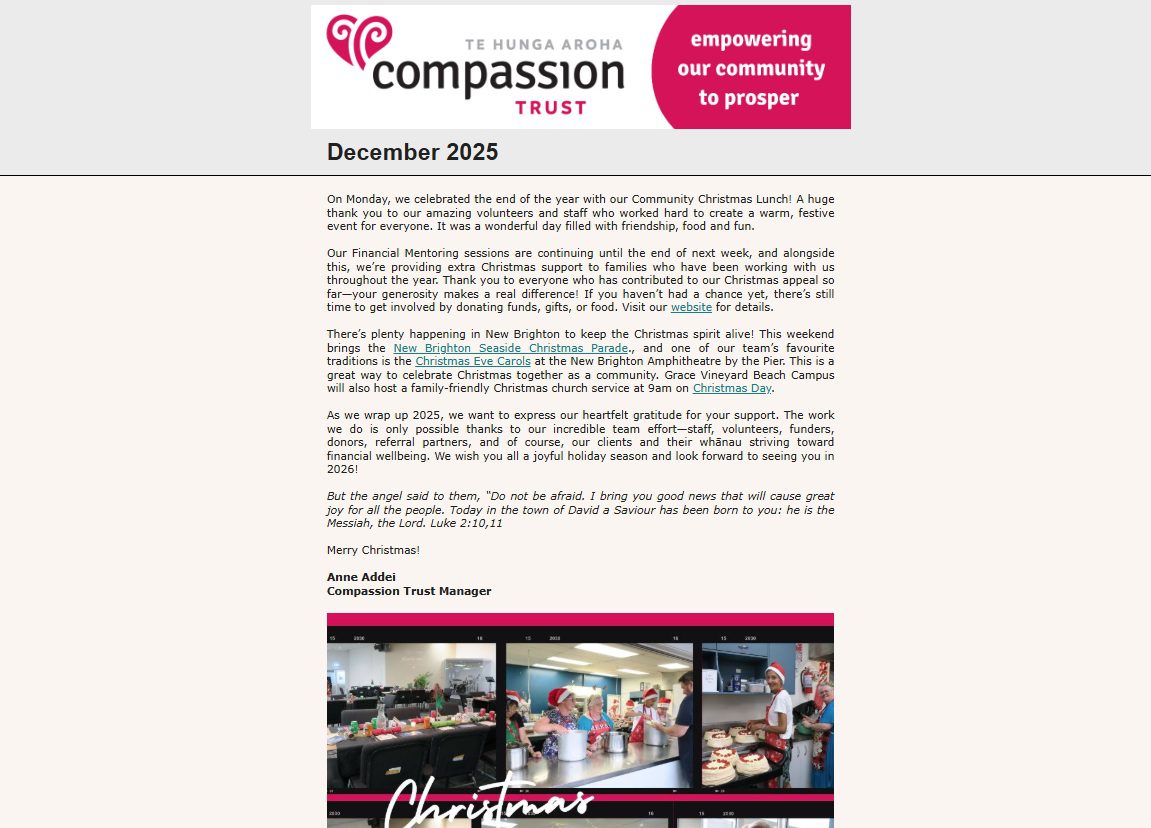 We were pleased to see Heather and John acknowledged at the Christchurch City Council Coastal Burwood Community Service Awards. They received an award for their commitment to our fortnightly community lunches which they have been running for the last 4 years. Over this last year their team has provided 1,640 healthy delicious cooked meals with dessert to people in our local community.